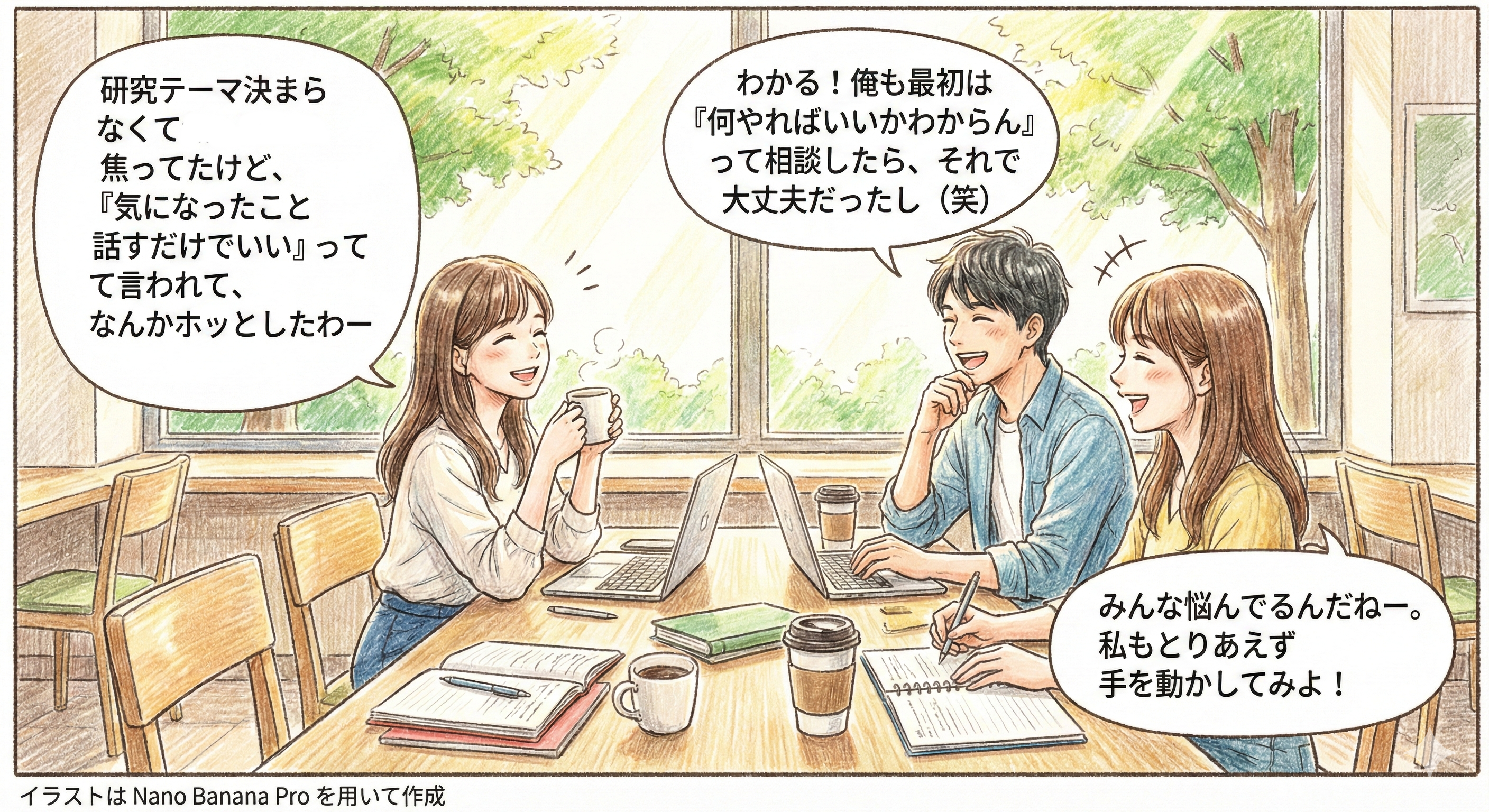 指導教員,仲間,AIへの相談