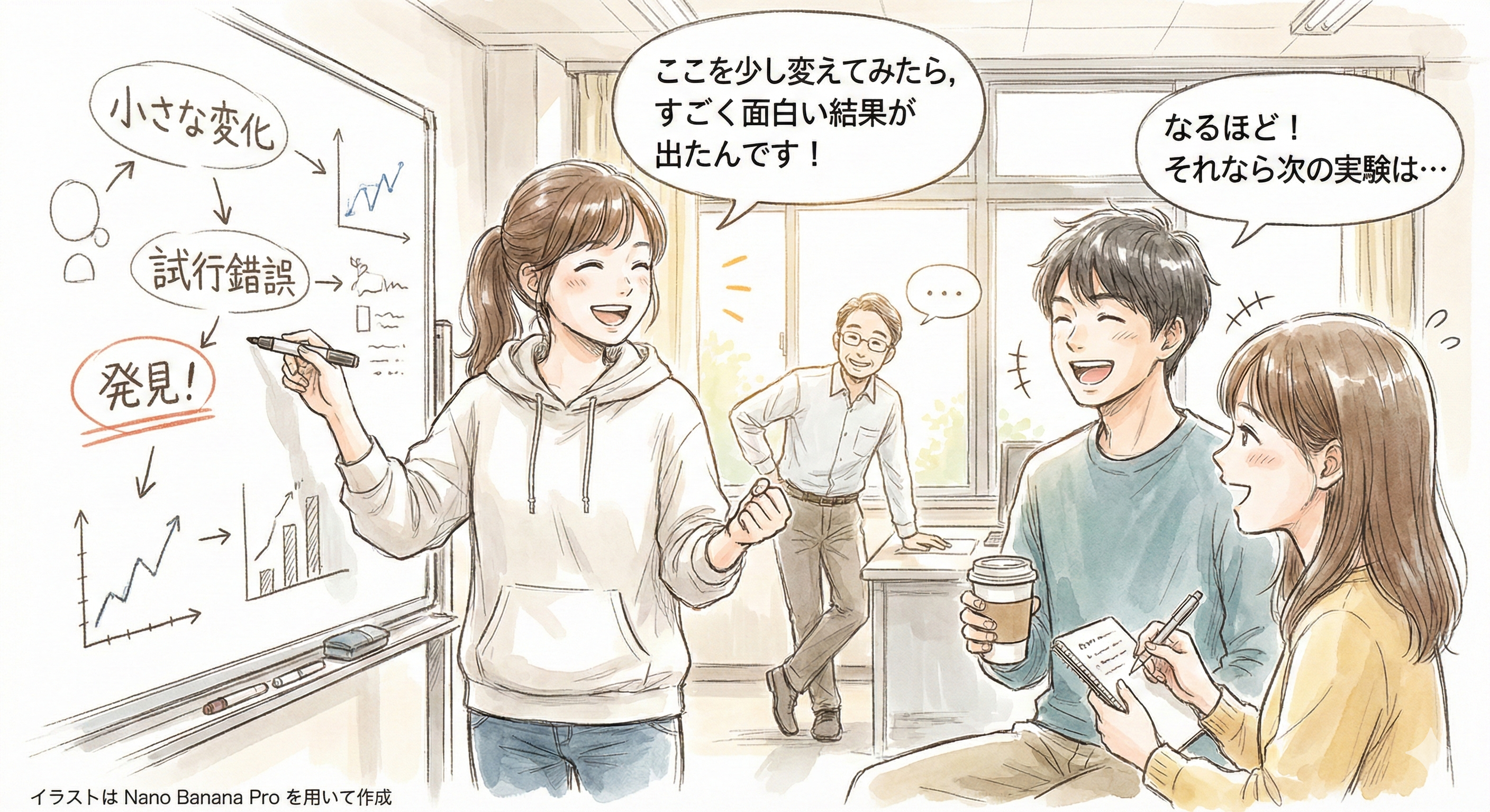 「こうしたらどうなるだろう」という疑問を持ち,試してみる。これが研究の出発点である。