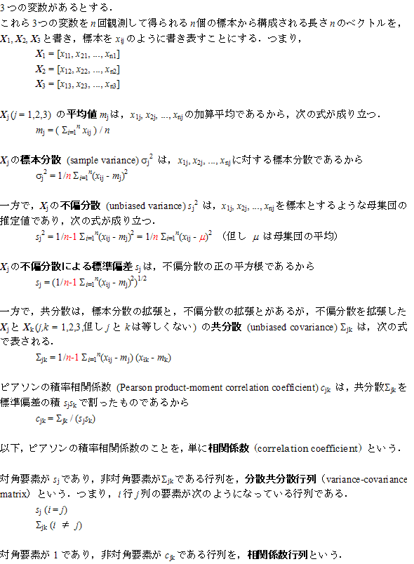 - ここでは、3 つの変数としているが,一般の m 個の変数が与えられた場合も同様の定義になる.