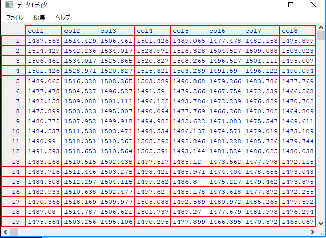 - すると,各行には,USDやEURやAUDの値の経時変化が並ぶ. これをベクトルと見立てると,2834次元のベクトルができる. これは,USDとEURとAUDの経時変化の波形をベクトルと見立てるもの.