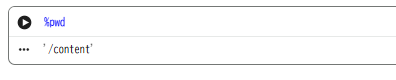 | カレントディレクトリ | Googleのサーバー上の仮想マシンが割り当てられ、カレントディレクトリは /content である。ローカルPCのディレクトリではない |