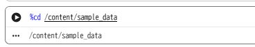 %(パーセント)をセルの行頭に付けると、Colab自体への命令(マジックコマンド)として実行する。カレントディレクトリの確認や変更に使う。