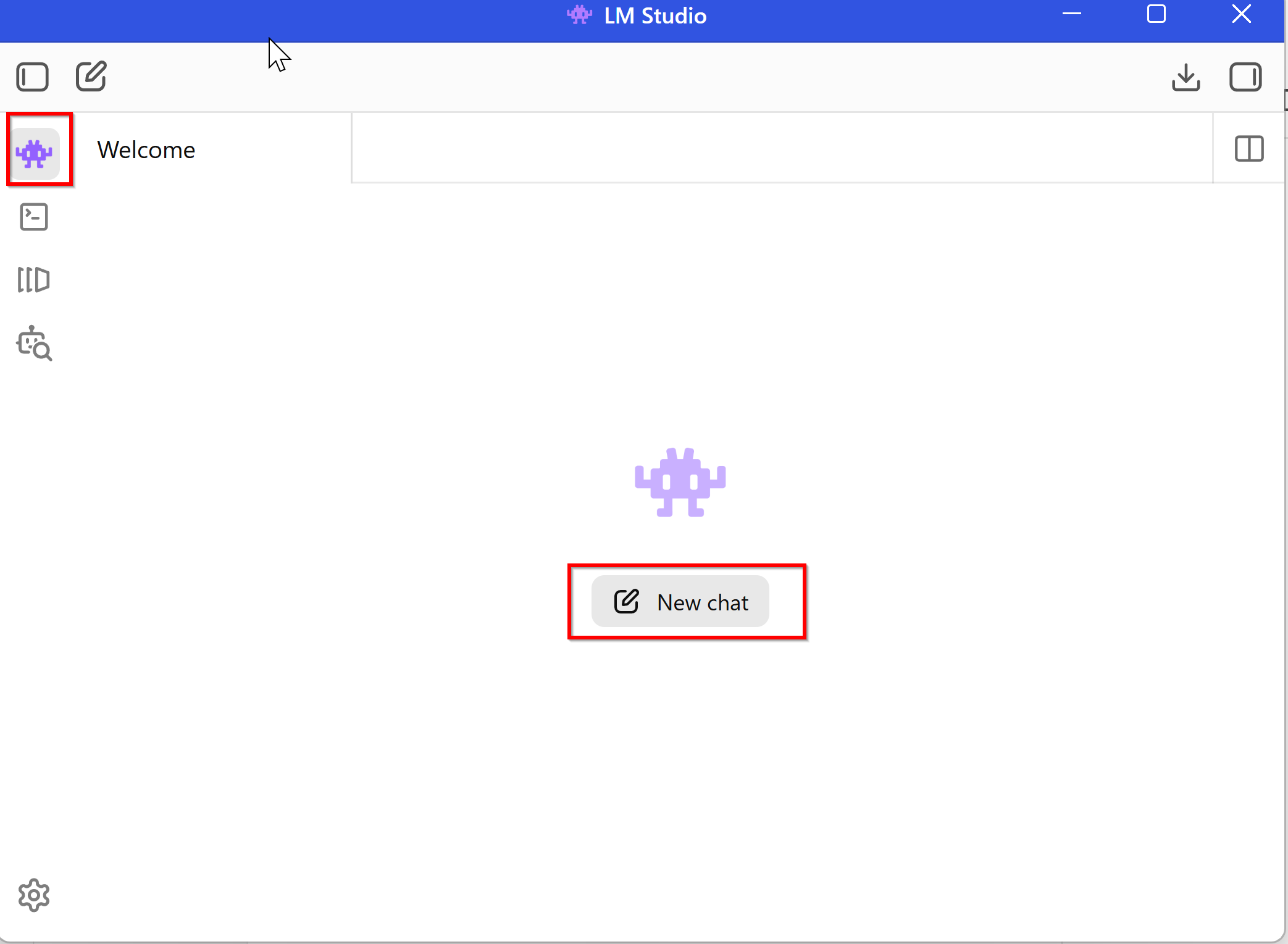 ダウンロードが終了したら、チャット画面に切り替える。「New Chat」と表示されたときは、クリックする。
