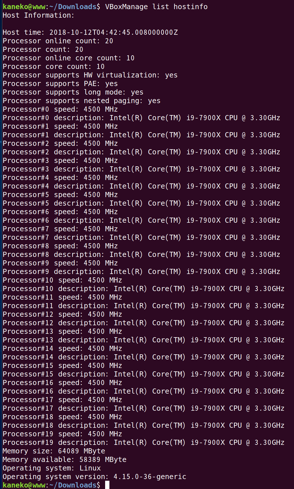 VirtualBox バージョン 5.2 のコマンドライン操作