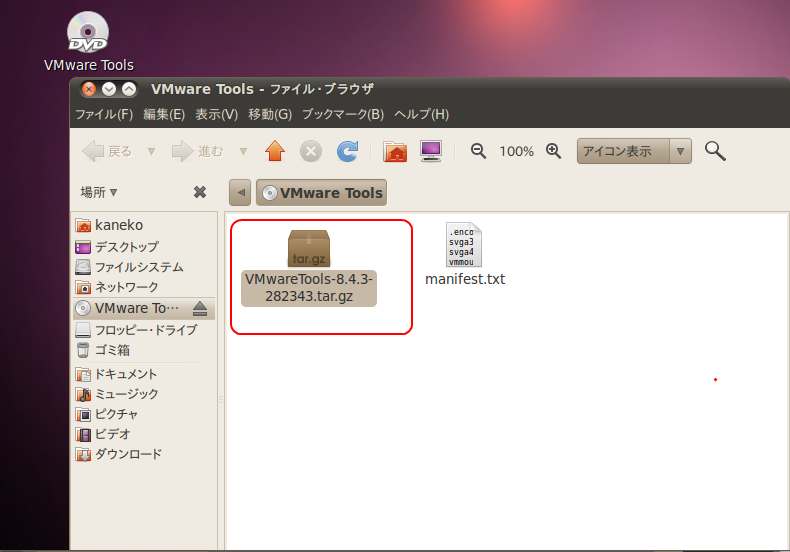 cd /home/kaneko/デスクトップ cd vmware-tools-distrib sudo perl vmware-install.pl