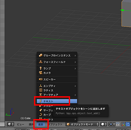 - 立方体(Cube) のオブジェクトと テキスト (Text) のオブジェクトを選ぶ