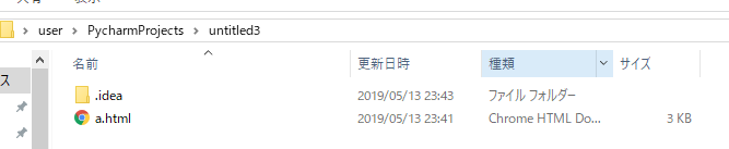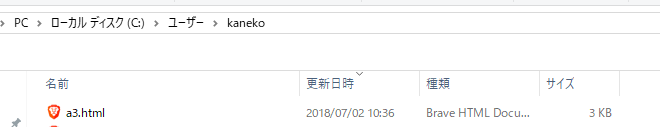 先ほど調べた「カレントディレクトリ」に a.html が作成される.