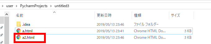 - 「カレントディレクトリ」に HTML ファイル a3.html ができている