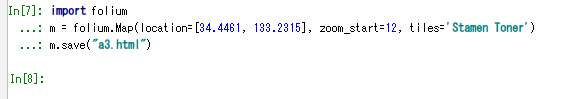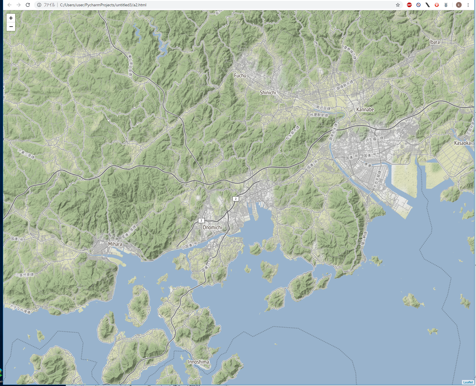 基本地図の生成(map_basic.py を実行) | カレントディレクトリに a.html が生成される |