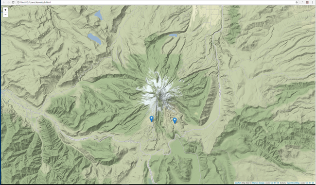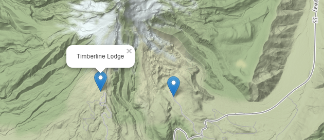 | マーカーをクリック | ポップアップ(例:'Mt. Hood Meadows')が表示される |