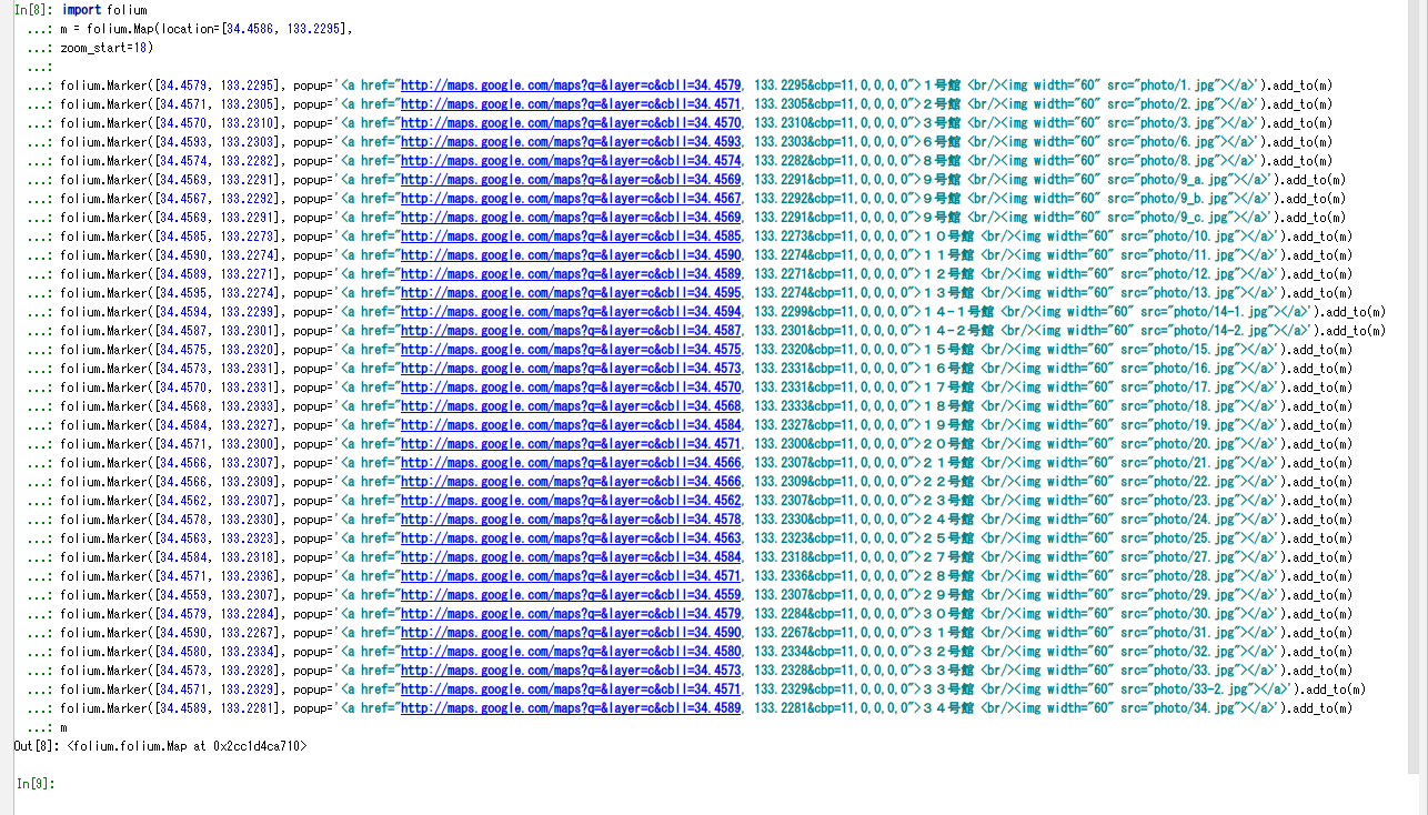 マーカーとイメージポップアップ付きの OpenStreetMap 地図(Python + leaflet.js + folium を使用)