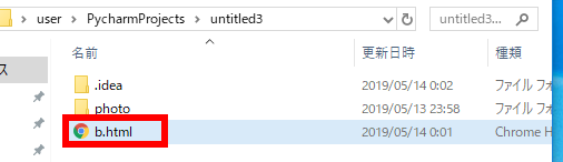 | プログラム実行後の HTML ファイル生成 | カレントディレクトリに b.html が生成されている |