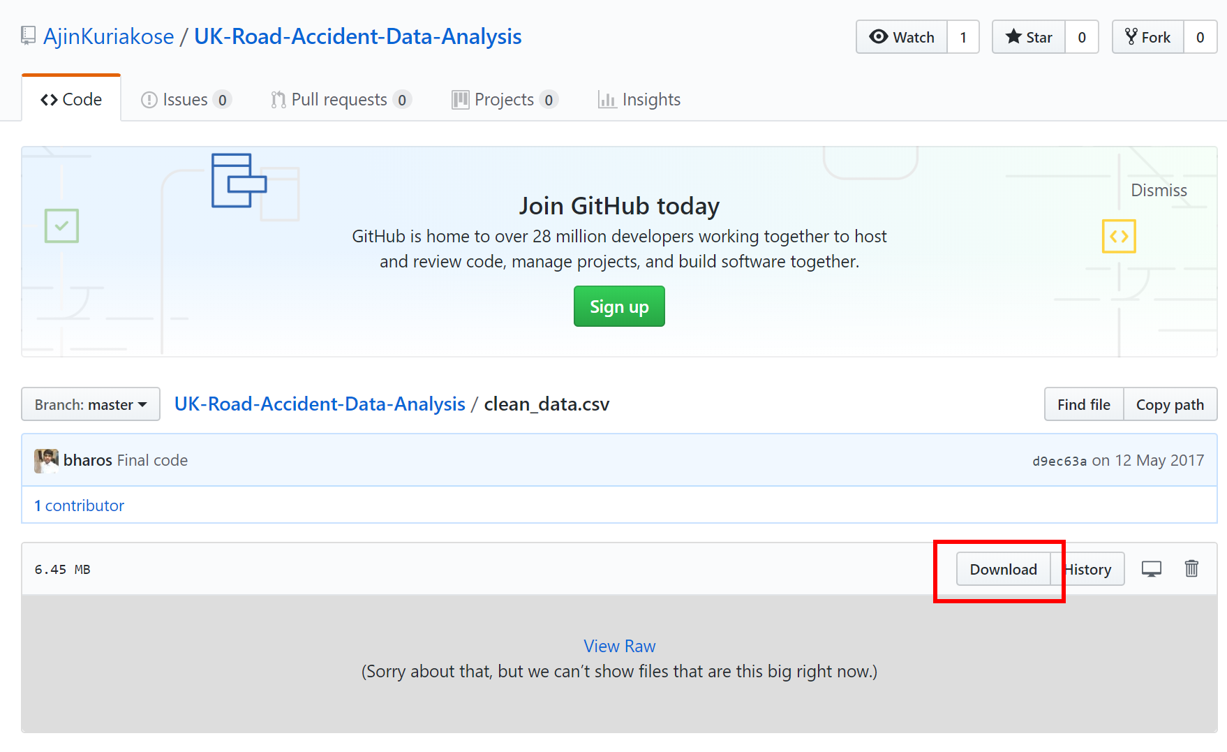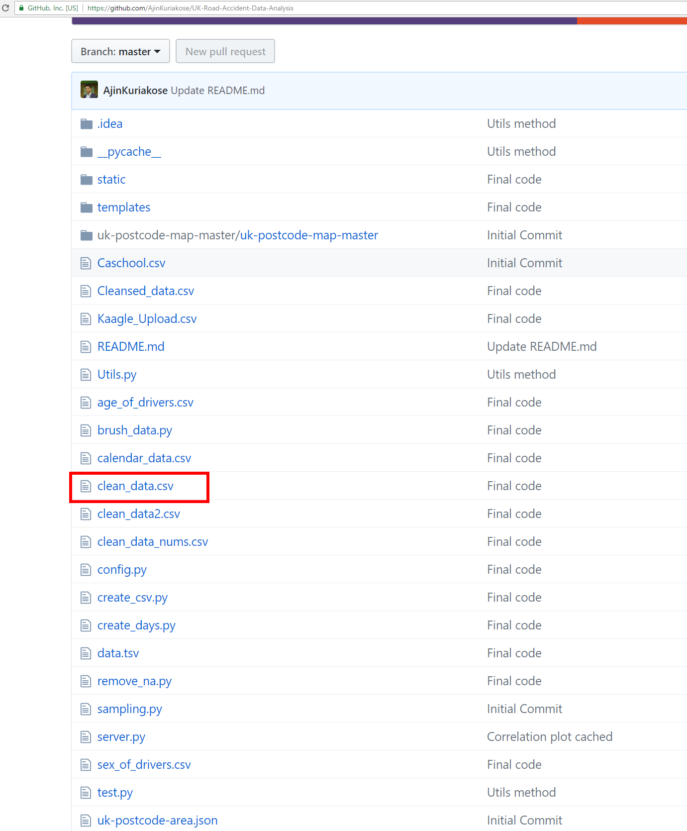 - GitHub の AjinKuriakose/UK-Road-Accident-Data-Analysis の Web ページを開く。