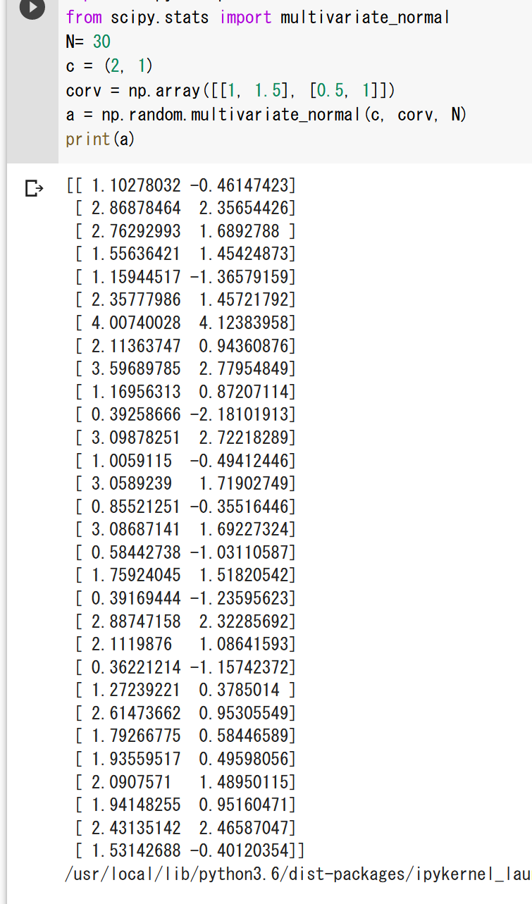 分散共分散行列からデータ生成(Python, Google Colaboratory を使用)