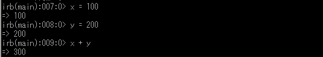 対話型 Ruby 処理系は,コンソールでコマンドを打つたびに評価結果が表示されるもの. 手軽に試すときに便利です.