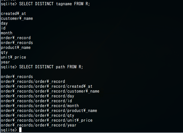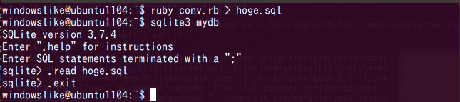 sqlite3 での操作手順例 (Table definition using sqlite3)