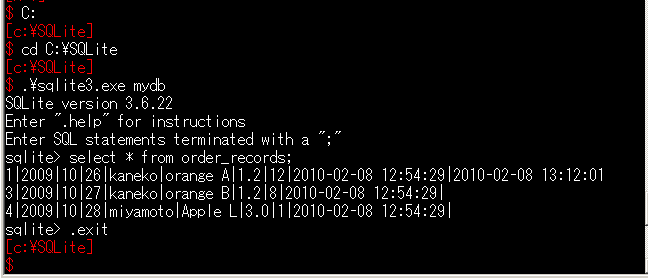 このページでは,組み込み型のリレーショナルデータベース管理システム SQLite 3 を使うことにする.
