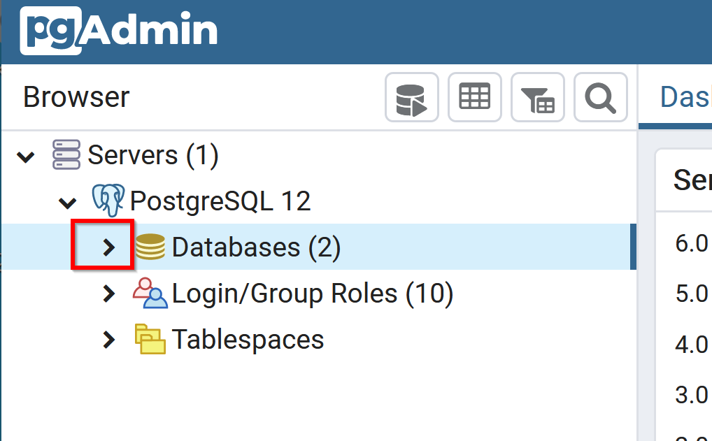 - 「Databases (データベース)」を展開する.