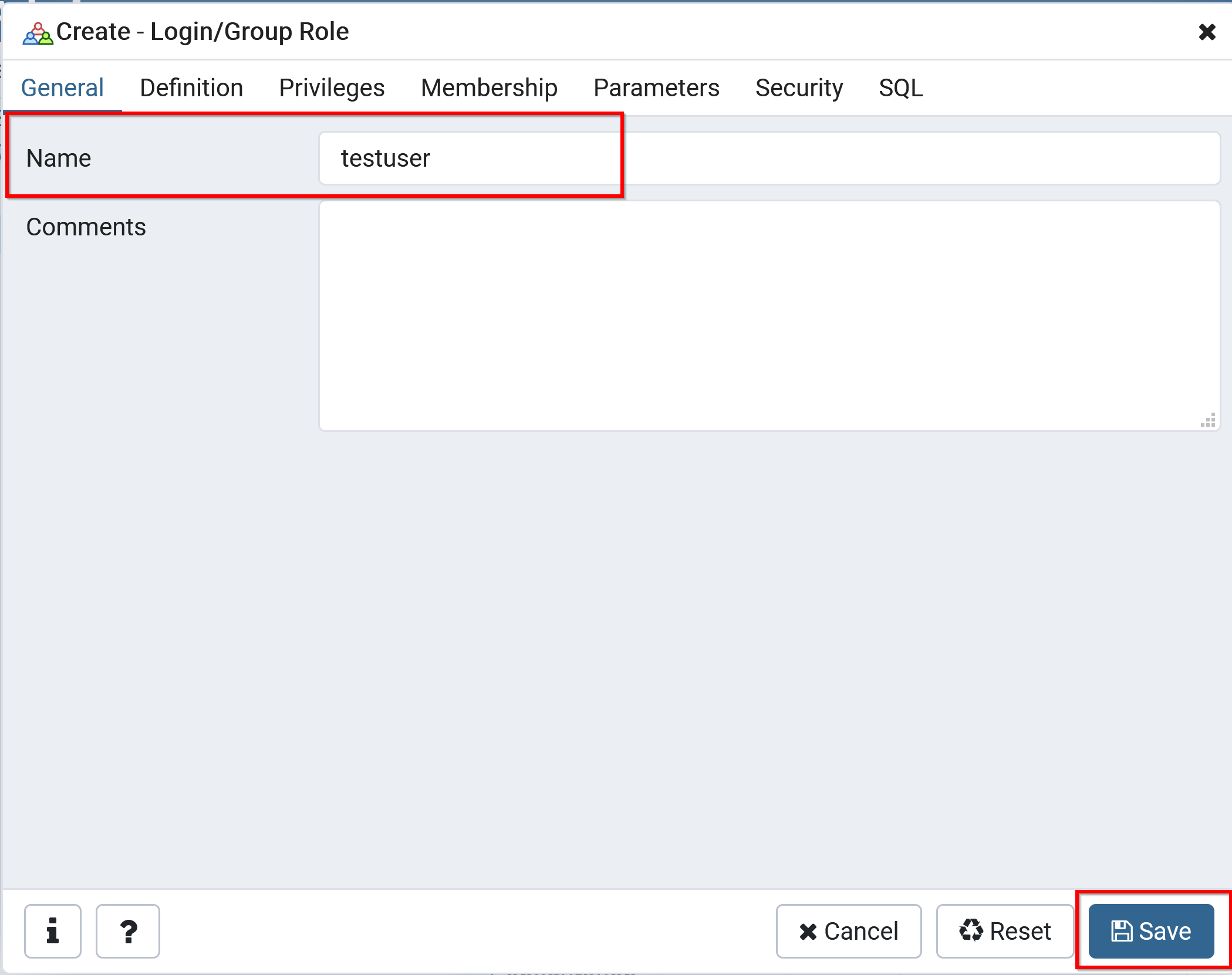 - Owner (オーナー): testuserを設定
