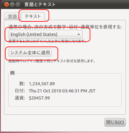 - 「フォーマット (Formats)」項目も、地域に合わせて(例: United States)変更することが推奨される。これにより日付、時刻、数値等の表示形式が整合する。