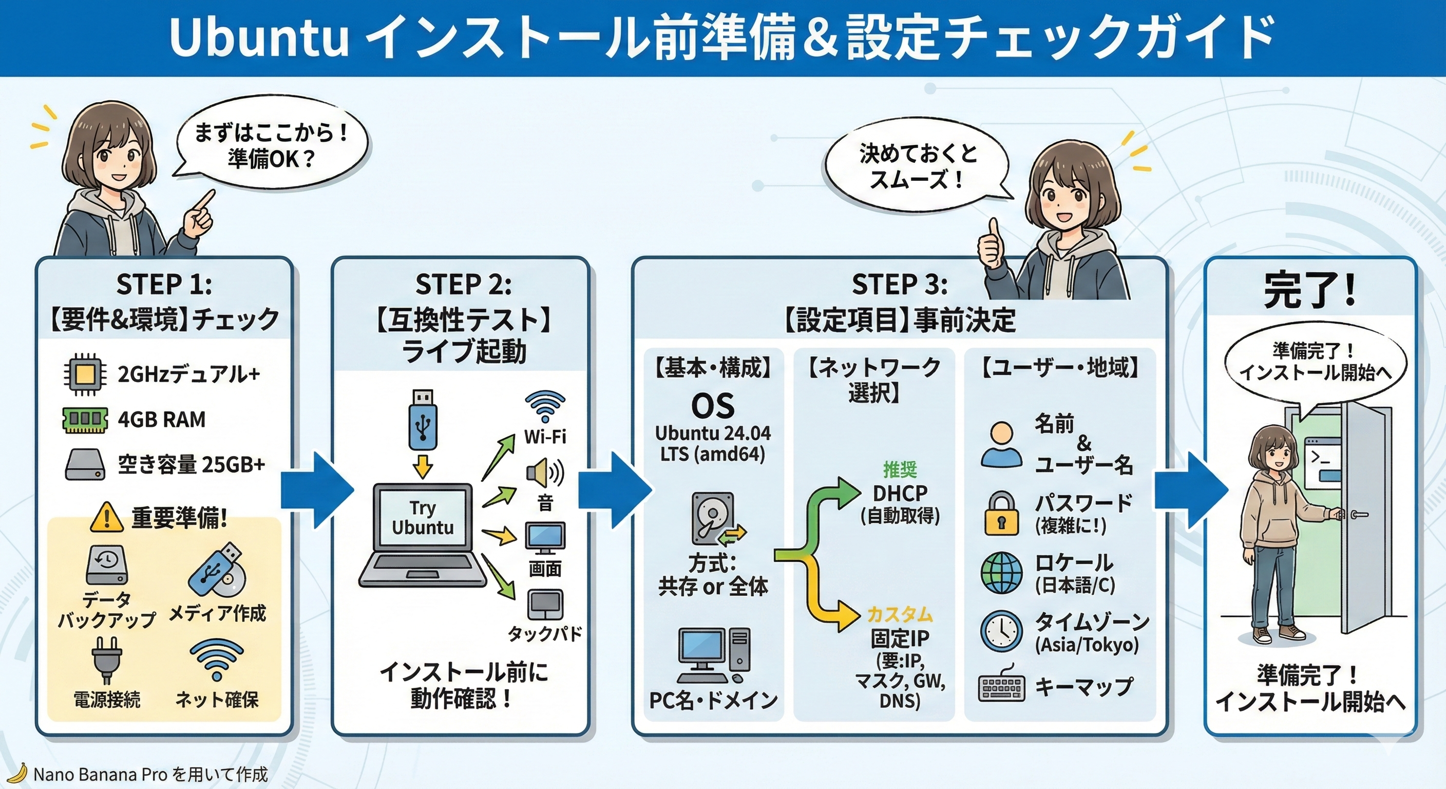- Ubuntu 24.04のインストール手順