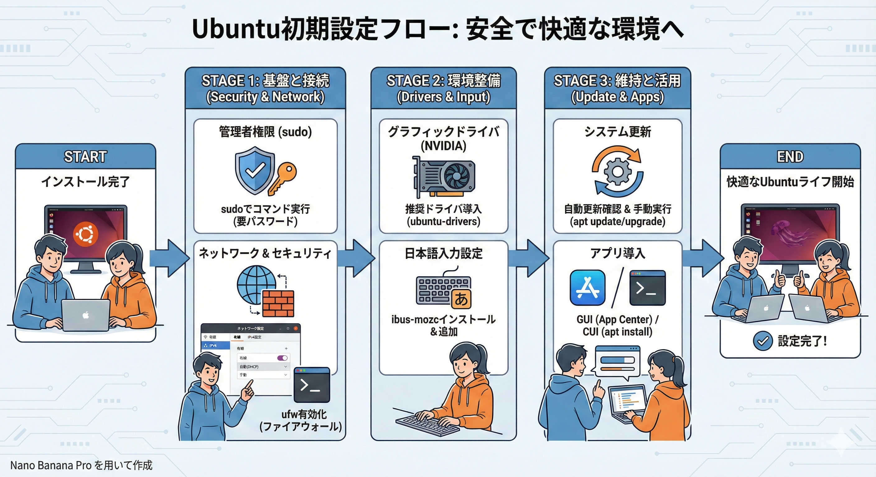 - Ubuntu 24.04 初期設定詳細ガイド: 別ページ »で説明