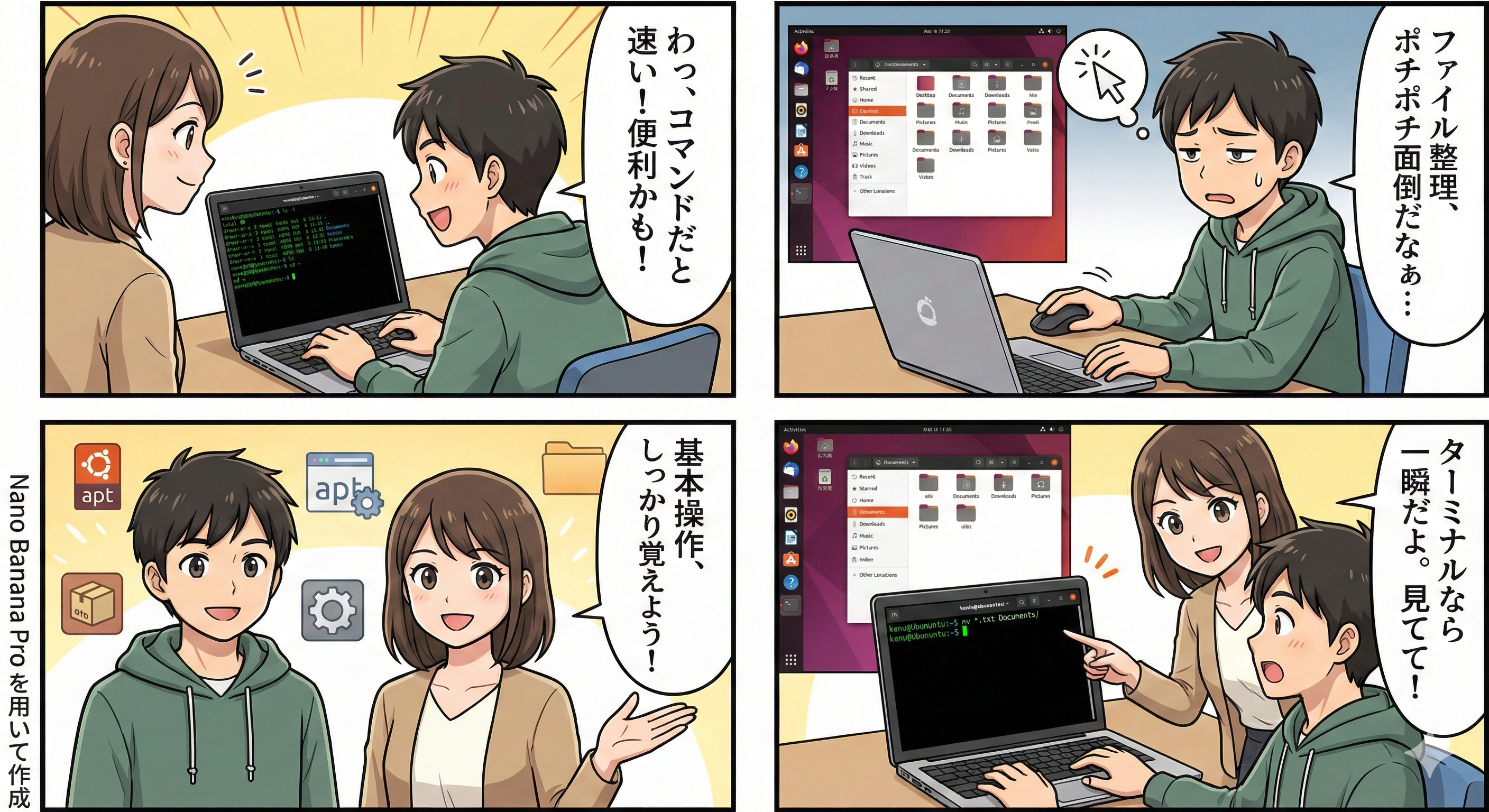 - Ubuntuシステムの基本操作ガイド: 別ページ »で説明