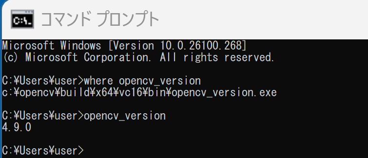 OpenCV 4.9.0 のインストール,動作確認(Windows 上)