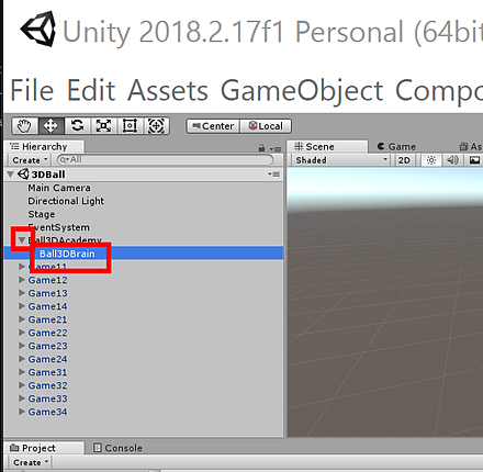 - Ball3DBrain ゲームオブジェクトのプロパティである Brain 要素は、
