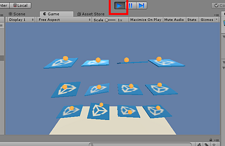 - もう1度「Play ボタン」をクリックして、実行を停止する。